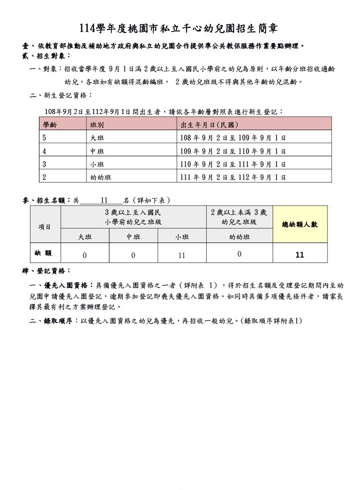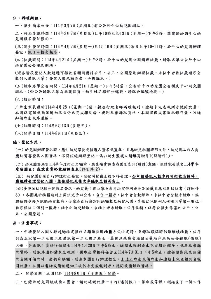 幼兒園公告